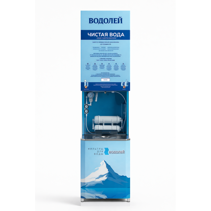 Автомат питьевой воды Водолей — высокопроизводительное решение для розлива очищенной питьевой воды в магазинах, торговых центрах, офисных комплексах и на улицах. Модель обеспечивает скорость подачи от 1 до 7 литров в минуту, что делает её идеальной как для небольших точек, так и для объектов с высокой проходимостью.