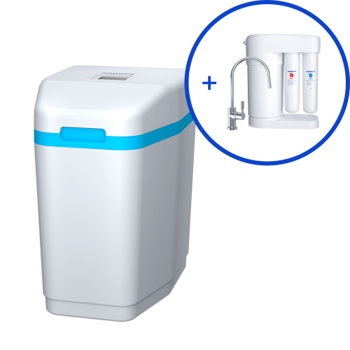Компактная и бесшумная система очистки воды 3 в 1 для умягчения и обезжелезивания воды во всём доме. Подходит для семьи из 3 человек и любого источника воды, включая скважины и колодцы.
